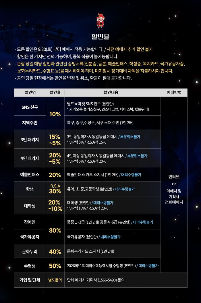 VIP¼® 140,000¿ø / R¼® 110,000¿ø / S¼® 90,000¿ø / A¼® 70,000¿ø